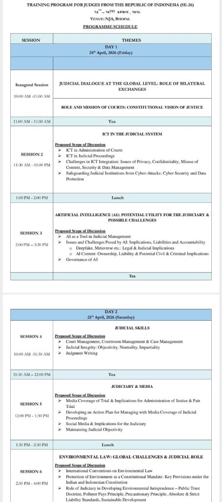 Program yang diselenggarakan selama lima hari, mulai tanggal 24 April 2026 hingga 28 April 2026 di National Judicial Academy (NJA), Bhopal, India, bukan hanya sekadar forum pembelajaran, tetapi juga ruang refleksi dan transformasi bagi masa depan peradilan Indonesia.