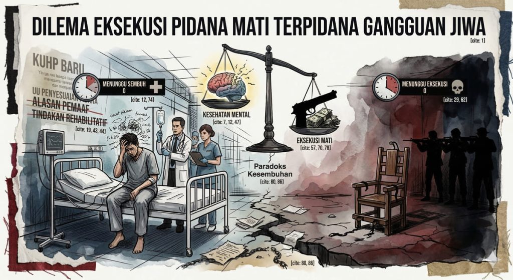 Perubahan hukum pidana di Indonesia melalui KUHP Baru (UU No. 1 Tahun 2023) dan aturan pelaksanaannya membawa sebuah perdebatan moral yang getir. Salah satu isu yang paling memancing diskusi adalah nasib terpidana mati yang menderita gangguan jiwa.