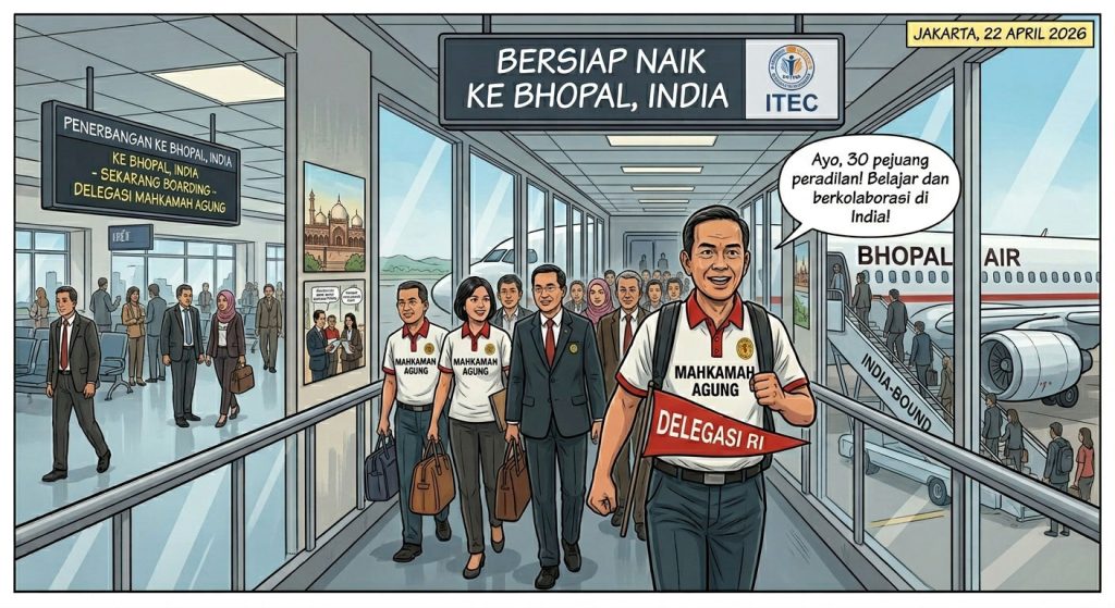 Mahkamah Agung Republik Indonesia, melalui Badan Strategi Kebijakan, Pendidikan dan Pelatihan Hukum dan Peradilan (BSDK), secara resmi memberangkatkan delegasi yang terdiri atas hakim dan aparatur peradilan untuk mengikuti Program “Training and Capacity Building Programme for Judges and Judicial Officers (Indonesia)” yang diselenggarakan oleh National Judicial Academy (NJA), India. Program ini merupakan program pelatihan yudisial pertama bagi para Hakim Indonesia yang diselenggarakan atas dasar adanya kerja sama antara Badan Strategi Kebijakan, Pendidikan dan Pelatihan Hukum dan Peradilan (BSDK) Mahkamah Agung RI dengan National Judicial Academy (NJA), India melalui skema Indian Technical and Economic Cooperation (ITEC) yang akan berlangsung pada 24 hingga 28 April 2026 di Kota Bhopal, India.
