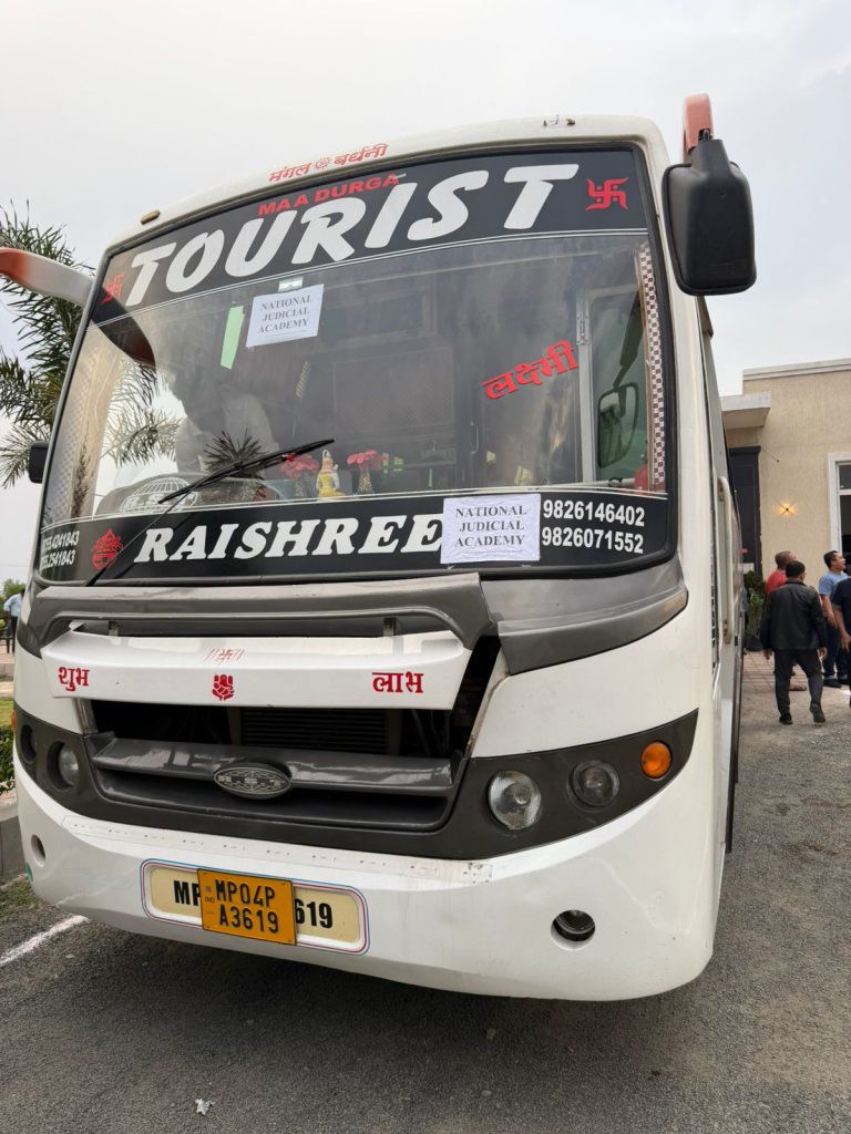 ​Setelah menuntaskan sesi ke-8 short course tepat pukul 02.00 PM, kami segera bersiap. Pukul 03.00 PM, bus “mewah” versi lokal yang disiapkan oleh National Judicial Academy (NJA) sudah terparkir rapi. Kami tidak sendiri; ada perwakilan NJA dan Pak Triroso dari KBRI India yang setia mendampingi. Yang membuat suasana semakin dramatis adalah pengawalan dari polisi India lengkap dengan sirine khasnya yang nyaring dan bendera kebangsaan di atas mobilnya.