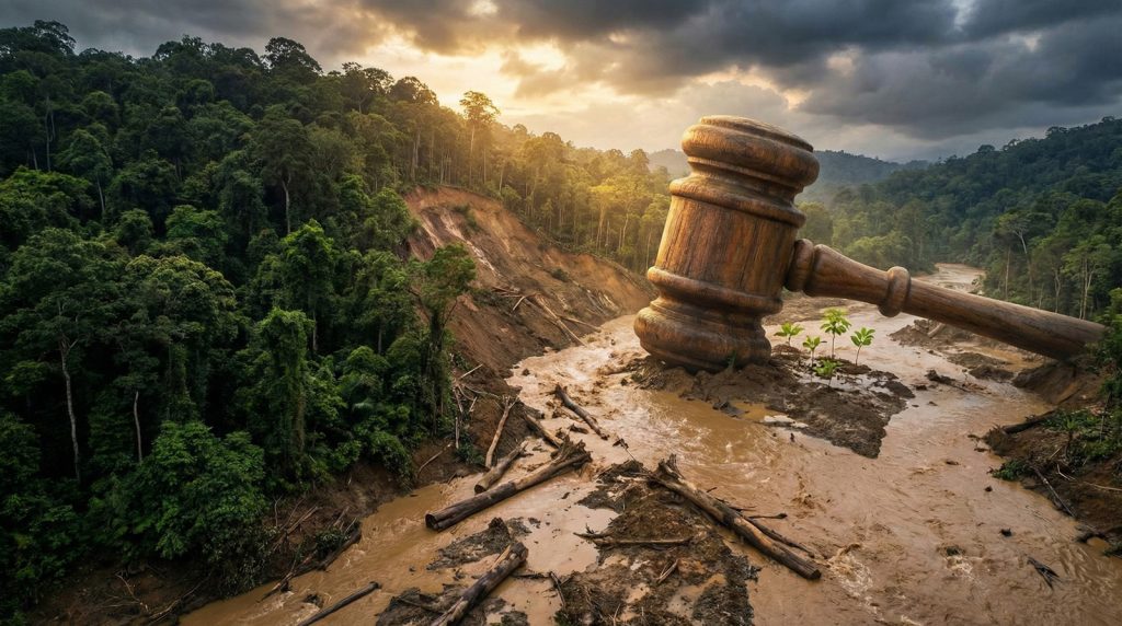 Meskipun Indonesia memiliki kerangka hukum yang kuat, seperti Undang-Undang Nomor 32 Tahun 2009 tentang Perlindungan dan Pengelolaan Lingkungan Hidup dan Undang-Undang Nomor 18 Tahun 2013 tentang Pencegahan dan Pemberantasan Pengerusakan Hutan (UU PPPH), dan untuk Mahkamah Agung sendiri juga telah mengeluarjan Perma Nomor 1 tahun 2023 tentang Pedoman Mengadili Perkara Lingkungan Hiddup akan tetapi implementasi di lapangan masih menghadapi tantangan besar.