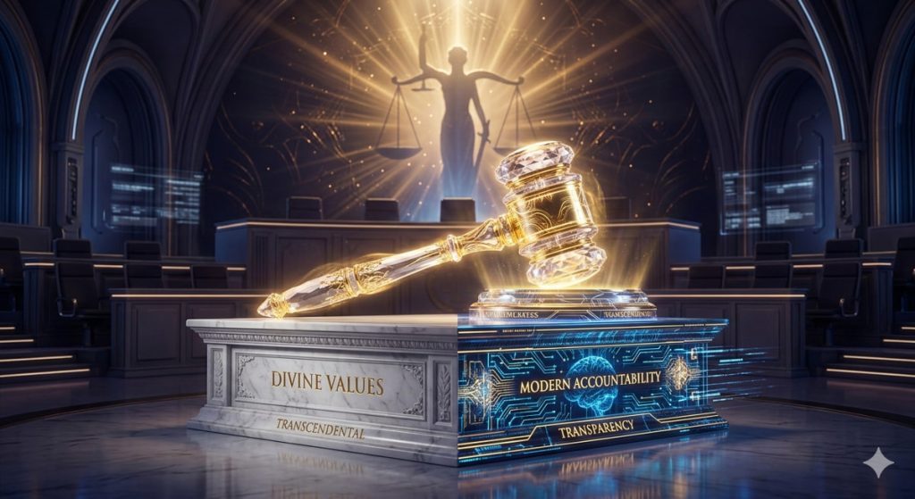 Al-Ghazali (2011:215) memberikan catatan kritis yang masih relevan hingga hari ini kerap kali runtuhnya keadilan bukan disebabkan oleh tumpulnya pengetahuan hukum, melainkan oleh rapuhnya karakter (moral frailty) sang hakim saat berhadapan dengan kilauan materi atau tekanan popularitas. Integritas adalah wujud paling nyata dari nilai transendental yang turun ke ruang-ruang sidang. Jimly Asshiddiqie (2023:56) berpendapat bahwa kepemimpinan di dunia yudisial harus berbasis pada keteladanan nyata, bukan sekadar retorika. Hal ini menjadi vital karena setiap ketukan palu hakim tidak hanya bergema di ruang sidang yang dingin, namun juga tercatat dalam buku besar pertanggungjawaban di hadapan Sang Pencipta.