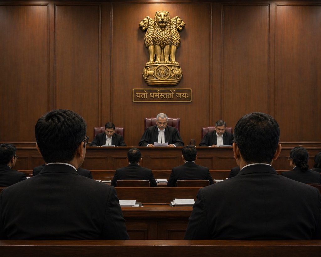 Di depan, persidangan dipimpin oleh Sanjeev Sachdeva—Ketua Hakim (Chief Justice) High Court of Madhya Pradesh saat ini.
