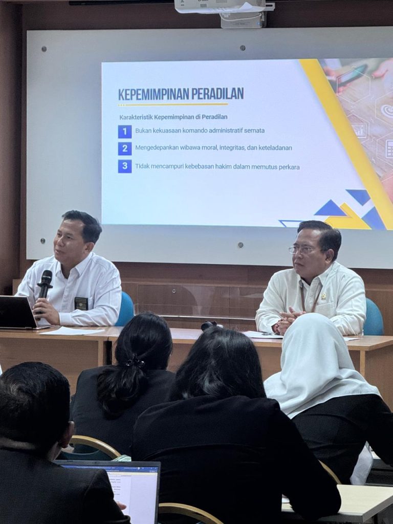 Narasumber juga menjelaskan prinsip-prinsip utama kepemimpinan peradilan, yakni independensi, akuntabilitas, integritas, dan profesionalitas. Keempat prinsip tersebut menjadi fondasi dalam memastikan bahwa proses peradilan berjalan tanpa intervensi, tetap terbuka terhadap pengawasan, serta berorientasi pada pelayanan publik yang prima.