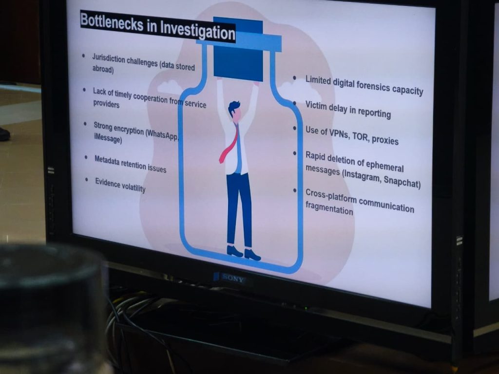Interaksi antara kedua pembicara dalam sesi tersebut menciptakan dinamika yang menarik. Kapoor menekankan pentingnya kesadaran dan pencegahan, sementara D’Costa memperdalam bagaimana kejahatan yang telah terjadi dapat diinvestigasi dan dibuktikan secara hukum. Keduanya sepakat bahwa pendekatan multidisipliner menjadi kunci dalam menghadapi cybercrime, menggabungkan teknologi, hukum, psikologi, dan strategi kebijakan publik.
