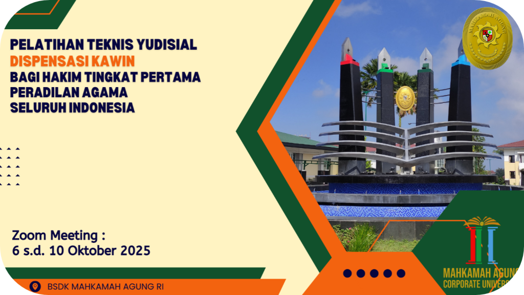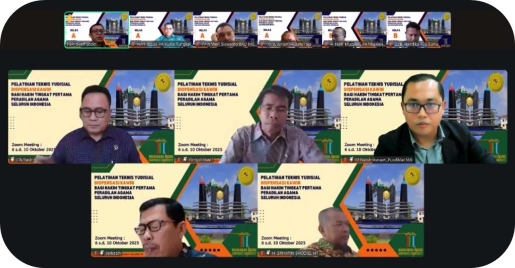 Bogor, 10 Oktober 2025 – Pusat Pendidikan dan Pelatihan (Pusdiklat) Teknis Peradilan Badan Strajak Diklat Kumdil (BSDK) Mahkamah Agung RI menyelenggarakan Pelatihan Teknis Yudisial (PTY) Penanganan Perkara Dispensasi Kawin selama satu pekan, pada 6-10 Oktober 2025. Sebanyak 161 Hakim Peradilan Agama dari seluruh Indonesia mengikuti kegiatan yang bertujuan meningkatkan kapasitas mereka dalam menangani perkara yang berkaitan langsung dengan perlindungan hak-hak dasar anak. Pelatihan selama satu pekan ini dipandu langsung oleh para Hakim Tinggi/Hakim Yusitisial Pusdiklat Teknis Peradilan lingkungan Peradilan Agama, yaitu: Dr. H. Jarkasih, M.H. (Koordinator); Dr. H. Sriyatin, S.Ag., M.Ag., M.H.; Dr. Cik Basir, S.H., M.H.I., Dr. Fitriyel Hanif, S.Ag., M.Ag., dan Dr. M. Natsir Asnawi, S.H.I., M.H.