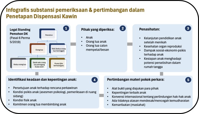 Terdapat setidaknya 3 (tiga) aspek penting yang harus diperhatikan Hakim dalam menangani perkara dispensasi kawin, yaitu: