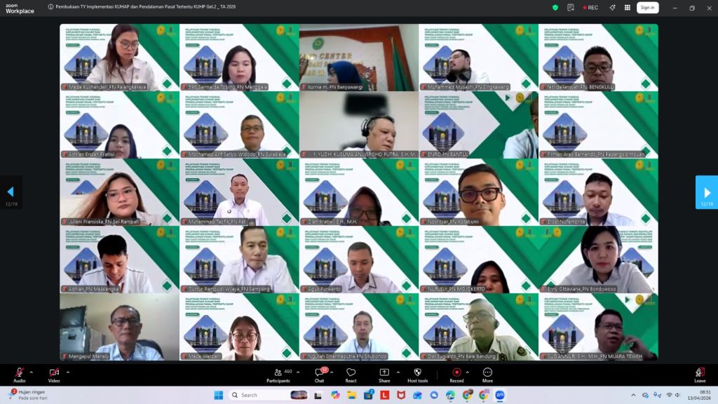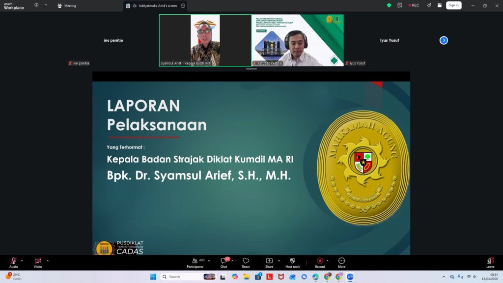 Senin, 13 April 2026 BSDK melalui Pusdiklat Teknis Peradilan Kembali mengadakan Pelatihan Teknis Yudisial Implementasi KUHAP dan Pendalaman Beberapa Pasal KUHP. Kegiatan ditandai dengan pembukaan dan penyampaian keynote speech oleh YM. Sutardjo, S.H., M.H., yang mewakili YM Wakil Ketua MA Bidang Yudisial.