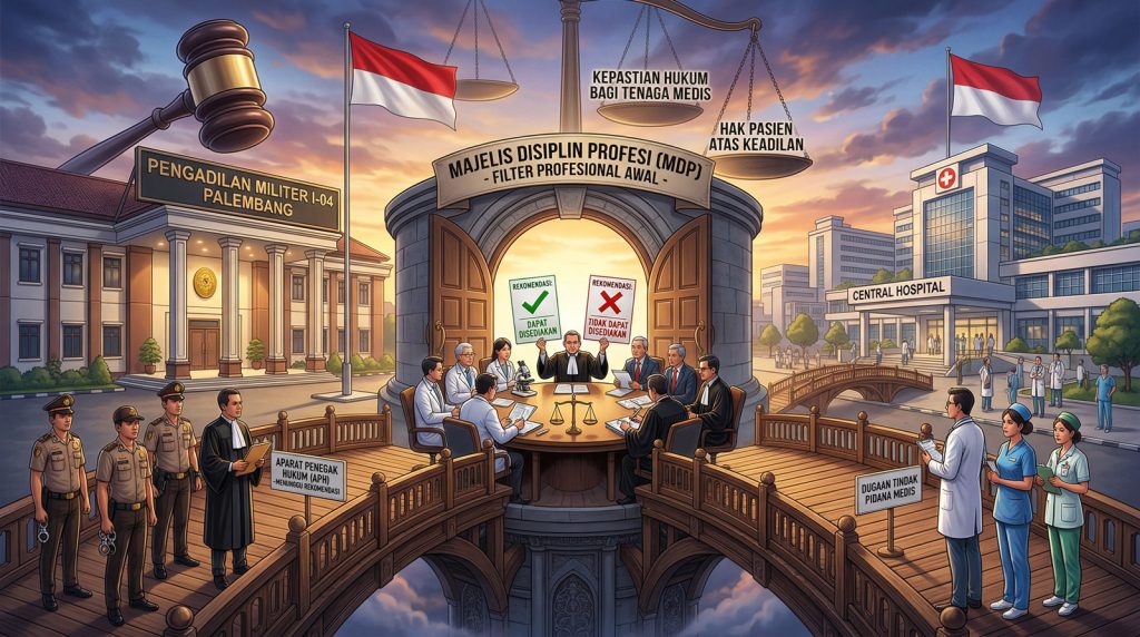 Sebagaimana pertimbangan Majelis Mahkamah Konstitusi sebagaimana putuasan Nomor 156/PUU-XXII/2024yang diucapkan dalam sidang pleno terbuka untuk umum pada tanggal 19 Januari 2026, terkait dengan Pengujian Materiil Pasal 308 UU Kesehatan yaitu Rekomendasi MDP merupakan bagian dari prosedur scientific-professional gatekeeping, yang tidak menyebabkan MDP dapat dipersamakan dengan lembaga pro justitia, secara doktriner hal tersebut dibenarkan karena lembaga pro justitia secara hukum adalah lembaga yang diberi kewenangan melakukan tindakan penyidikan, penuntutan, atau menjatuhkan putusan yang membawa akibat langsung, sehingga tunduk sepenuhnya pada due process of law dan asas presumption of innocence. Berkenaan dengan hal itu, oleh karena MDP bukan merupakan lembaga pro justitia, dalam konteks hukum pidana, fungsi yang diberikan kepada MDP tidak dimaksudkan menggantikan atau mengambil alih kewenangan penyidik, penuntut umum, ataupun hakim.