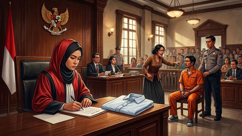 Gendis terdiam sesaat. Lalu seketika ia berkata lirih, “Ampun, Pak Hakim. Baik, kali ini saya akan jujur.”