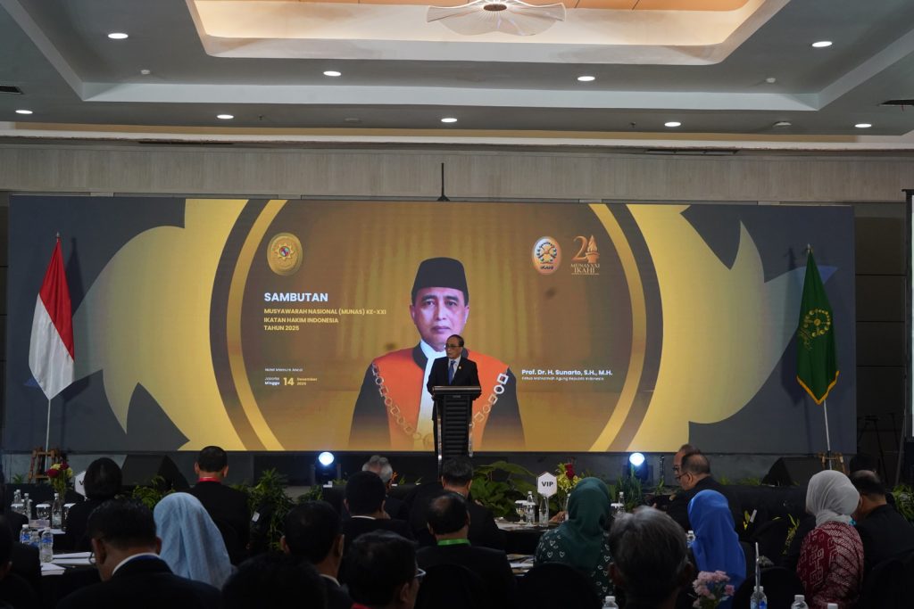 Jakarta – Ketua Mahkamah Agung Republik Indonesia, Yang Mulia Prof. Dr. H. Sunarto, menegaskan bahwa integritas merupakan identitas utama seorang hakim, bukan sekadar atribut tambahan. Penegasan tersebut disampaikan saat membuka Musyawarah Nasional (Munas) ke-XXII Ikatan Hakim Indonesia (IKAHI) Tahun 2025 di Hotel Mercure Ancol, Jakarta, Minggu (14/12/2025).