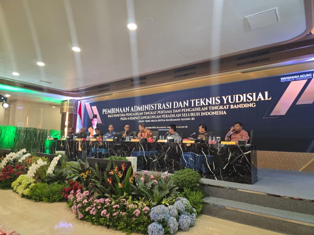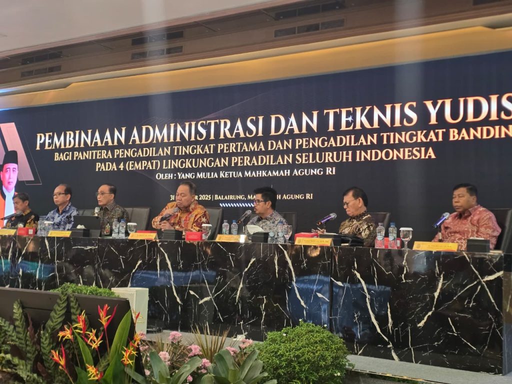 Pembinaan Panitera Tingkat Pertama dan Tingkat Banding seluruh Indonesia berlangsung pagi ini Jumat, 30/10/25 dihadiri 923 Panitera dari seluruh Indonesia. YM Ketua MA RI membuka kegiatan tersebut dalam sambutan yang hangat. Ketua MA menginginkan “apel akbar” panitera seluruh Indonesia ini sebagai bentuk konsolidasi akbar seluruh panitera Indonesia. Ketua MA memastikan bahwa seluruh Panitera Indonesia harus pernah datang masuk di ruang balairung MA sebagai bentuk cinta pada MA dan peradilan.