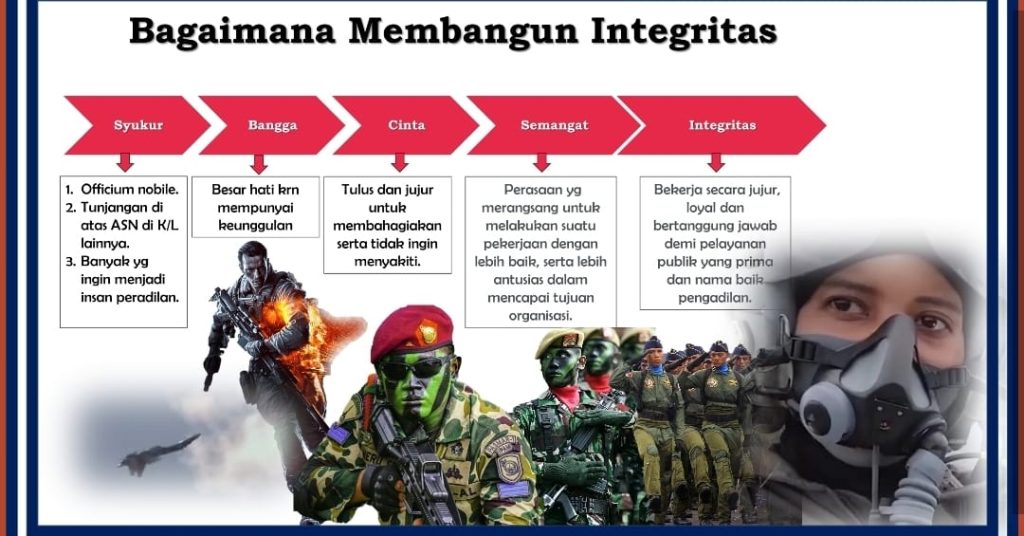 Integritas merupakan puncak dari seluruh tahapan tersebut. Integritas tidak dapat berdiri sendiri tanpa fondasi syukur, kebanggaan, cinta, dan semangat. Integritas diwujudkan dalam perilaku bekerja secara jujur, loyal, dan bertanggung jawab, khususnya dalam pelayanan publik. Integritas berarti konsistensi antara nilai yang diyakini dengan tindakan yang dilakukan. Aparatur yang berintegritas akan menolak segala bentuk penyimpangan, meskipun terdapat kesempatan, tekanan, atau keuntungan pribadi yang ditawarkan.