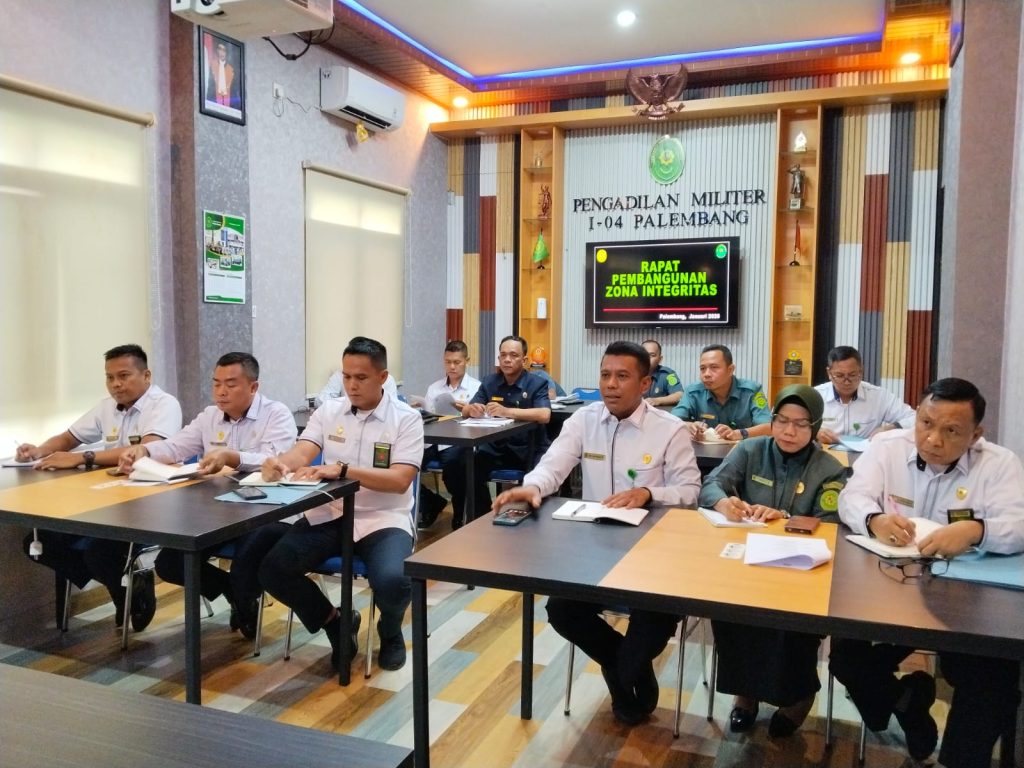 Pengadilan Militer I-04 Palembang dalam melaksanakan pembangunan zona integritas untuk mendapatkan predikat wilayah bebas korupsi dilandasi kesadaran bersama bahwa upaya pembangunan zona integritas merupakan suatu kebutuhan yang harus segera dilaksanakan dalam rangka peningkatan percepatan reformasi birokrasi. Hakekat pembangunan zona integritas adalah membangun dan mengimplementasikan program reformasi birokasi secara baik untuk menumbuhkembangkan budaya kerja birokrasi yang anti korupsi, berkinerja, dan budaya birokrasi yang melayani publik secara baik. Oleh karenanya sejak tahun 2019, Pengadilan Militer I-04 Palembang telah melakukan pencanangan  dan komitmen bersama dalam pembangunan zona integritas (ZI) menuju wilayah bebas korupsi yang diwujudkan dalam Penandatanagan Pakta Integrias, penguatan budaya anti korupsi dan gratifikasi, peningkatan kualitas pelayanan publik serta digitalissi sistem kerja.