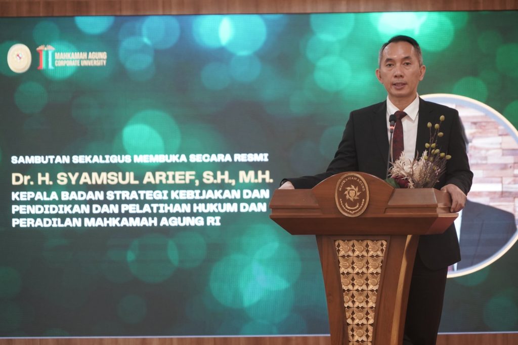 Selanjutnya, Kepala BSDK MA RI, Bapak Dr. H. Syamsul Arief, SH., MH, memberikan sambutan dan pesan kepada seluruh peserta Latsar, sebelum membuka secara resmi pelatihan tersebut. Tidak panjang pesan yang beliau sampaikan kepada para peserta, namun tentu saja penuh makna yang mendalam. Dalam pesanNya, Beliau menyampaikan, bahwa seorang CPNS tentu saja masih dalam keterbatasan Kompetensi terlebih dalam Kompetensi pemberian layanan kepada masyarakat. Atas keterbatasan kompetensi tersebut, satu hal yang harus dicamkan oleh CPNS adalah memiliki sikap Sopan dan Loyal kepada Pimpinan atau dalam Bahasa Jawa nya “Nurut”. Sebagai CPNS yang rata – rata masuk dalam Generasi Z, tentu saja banyak dari mereka memiliki karakter yang merasa “pintar” padahal tidak semua demikian. Mereka bersikap lebih apatis kepada orang lain. Karakter seperti itu justru  bukan menampilkan kepintaran, malah justru sebaliknya. Seharusnya sebagai warga baru Peradilan, CPNS harus bertanya kepada Pimpinan atau yang senior di kantor jika ada hal yang belum dimengerti dalam menjalankan tugas Peradilan.