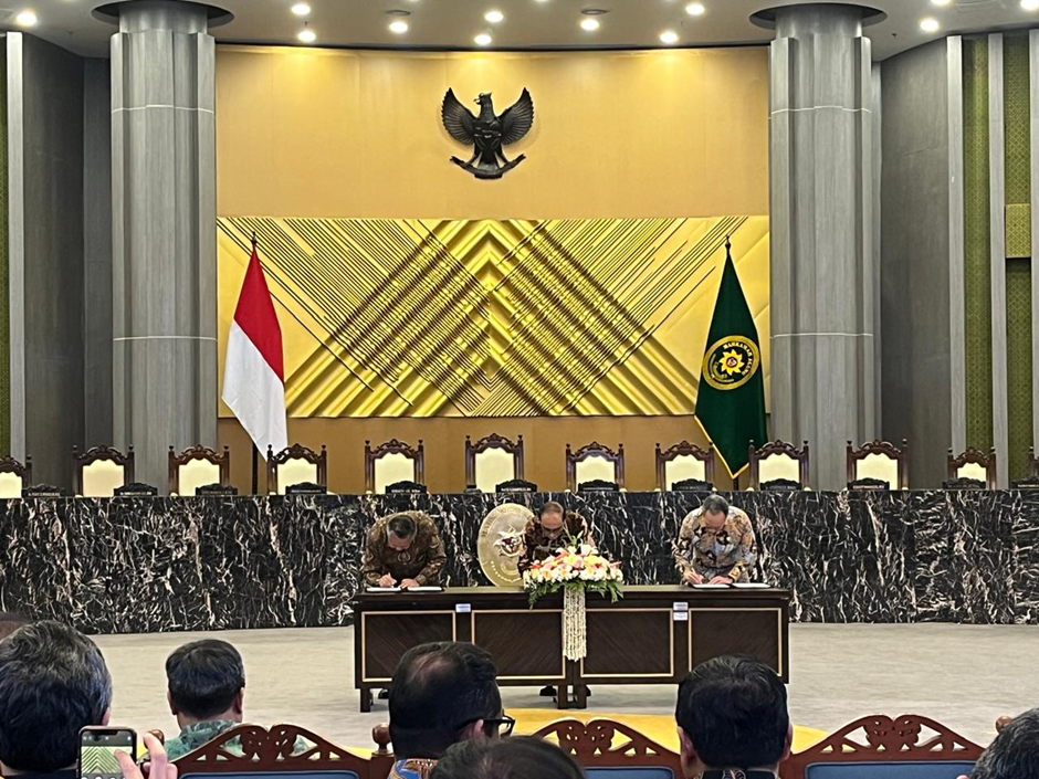 Dalam rangka memperkuat pelaksanaan tugas dan fungsi konstitusional masing-masing lembaga negara, Mahkamah Agung Republik Indonesia, Bank Indonesia, dan Otoritas Jasa Keuangan secara resmi menandatangani Nota Kesepahaman tentang Kerja Sama dan Koordinasi. Penandatanganan tersebut dilaksanakan pada Jumat, 19 Desember 2025, bertempat di Gedung Mahkamah Agung Republik Indonesia, Lantai 14, Ruang Prof. Kusuma Atmaja, pada pukul 14.00 WIB.