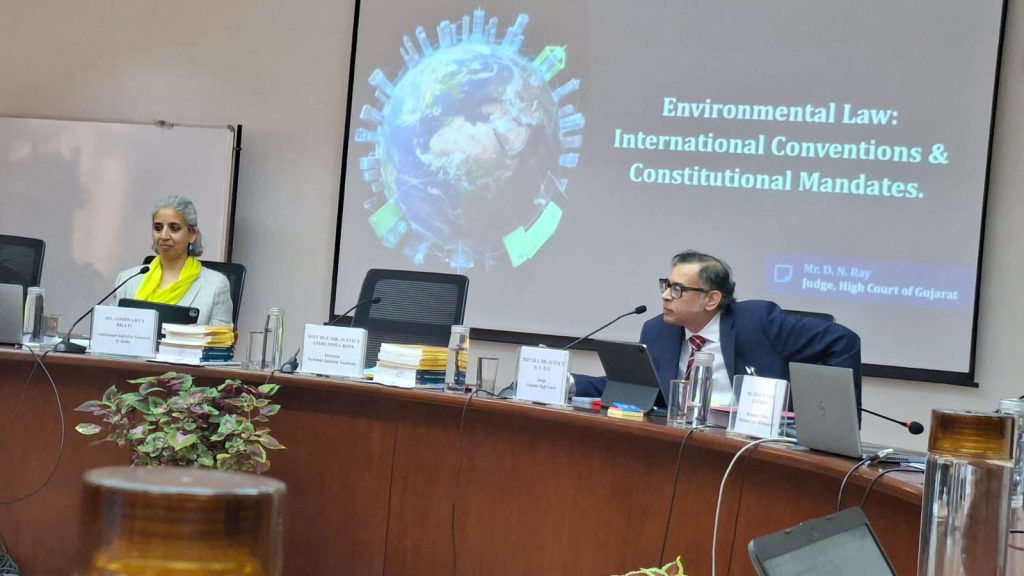 Bhopal, 25 April 2026 – Pelatihan dan Peningkatan Kapasitas Hakim serta Aparatur Peradilan Indonesia di National Judicial Academy, Bhopal, India, memasuki hari kedua. Pada Sesi keenam ini tema yang diangkat adalah “Environmental Law: Global Challenge and Judicial Role”., dengan Administrative Judge dari Pengadilan Tinggi Gujarat yang bernama Hon’ble Mr. Justice D. N. Ray atau yang akrab disapa dengan Justice Ray ini hadir sebagai salah satu pemateri bersama dengan Ms. Aishwarya Bhati. Dalam penyampaiannya yang mendalam, Justice Ray mengajak seluruh delegasi yang berjumlah 30 orang dari Indonesia tersebut untuk memulai dari sebuah kesadaran fundamental: bahwa bumi bukanlah warisan dari nenek moyang kita, melainkan sesuatu yang hampir kita pinjam dari generasi mendatang. “Ini adalah masa depan kita bersama,” tegasnya. “Bukan masa depanmu, bukan masa depanku, karena masa depanku terhubung dengan milikmu. Sumber daya yang kita bagi di planet ini sebenarnya bukan milik kita. Kita memegang posisi kepercayaan ini, dan merupakan kewajiban kita bahwa generasi berikutnya mewarisi lingkungan sedapat mungkin dengan cara yang sama seperti kita mewarisinya dari para leluhur.”
