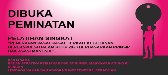 Badan Strategi Kebijakan dan Diklat Hukum dan Peradilan Mahkamah Agung RI kembali menorehkan langkah strategis yang penuh makna. Melalui komunikasi yang komprehensif dan kolaborasi yang solid bersama Lembaga Kajian dan Advokasi Independensi Peradilan (LeIP), BSDK resmi membuka Peminatan Pelatihan Singkat bertajuk “Penerapan Pasal-Pasal Terkait Kebebasan Berekspresi dalam KUHP 2023 Berdasarkan Prinsip Hak Asasi Manusia.”