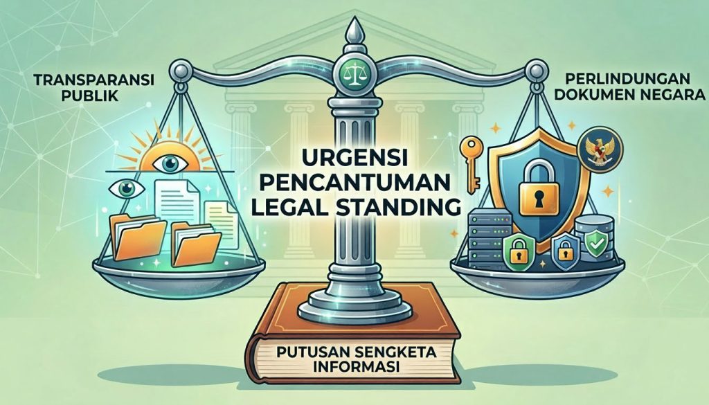 Pemuatan pertimbangan hukum mengenai legal standing dalam putusan sengketa informasi, tentu bertujuan untuk memastikan keadilan dan kemanfaatan hukum, sekaligus memberikan perlindungan hukum yang obyektif dan preventif atas dokumen dari penyalahgunaan informasi yang berpotensi menghambat penyelenggaraan pemerintahan dan perlindungan atas data-data pribadi. Sehingga, kendatipun telah dipertimbangkan oleh Komisi Informasi, (apalagi bila tidak dipertimbangkan secara komprehensif), masih terdapat proses penyaringan kedua oleh Pengadilan TUN ikhwal kepentingan dan/atau kerugian yang didalilkan dalam permohonan informasi.