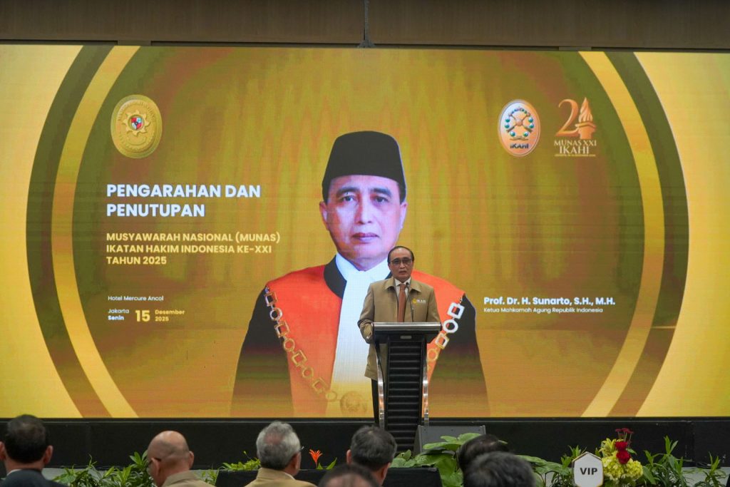 Jakarta — Musyawarah Nasional (Munas) Ikatan Hakim Indonesia (IKAHI) ke-XXI Tahun 2025 resmi ditutup oleh Ketua Mahkamah Agung Republik Indonesia, Prof. Sunarto, di Hotel Mercure Ancol, Jakarta, Senin (15/12/2025). Penutupan Munas menandai berakhirnya rangkaian forum strategis hakim Indonesia yang berlangsung selama dua hari penuh dengan diskusi, musyawarah, dan suksesi kepemimpinan organisasi.
