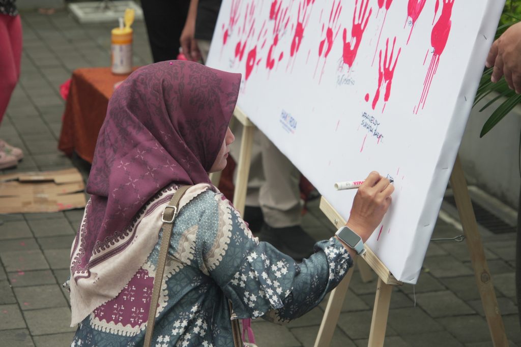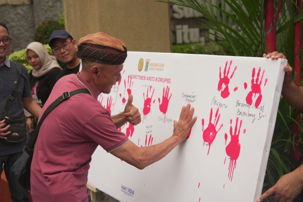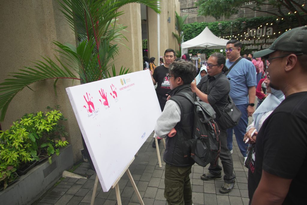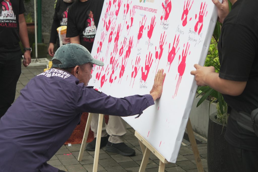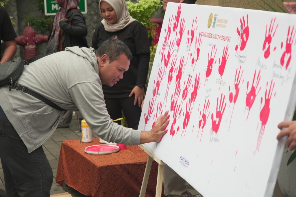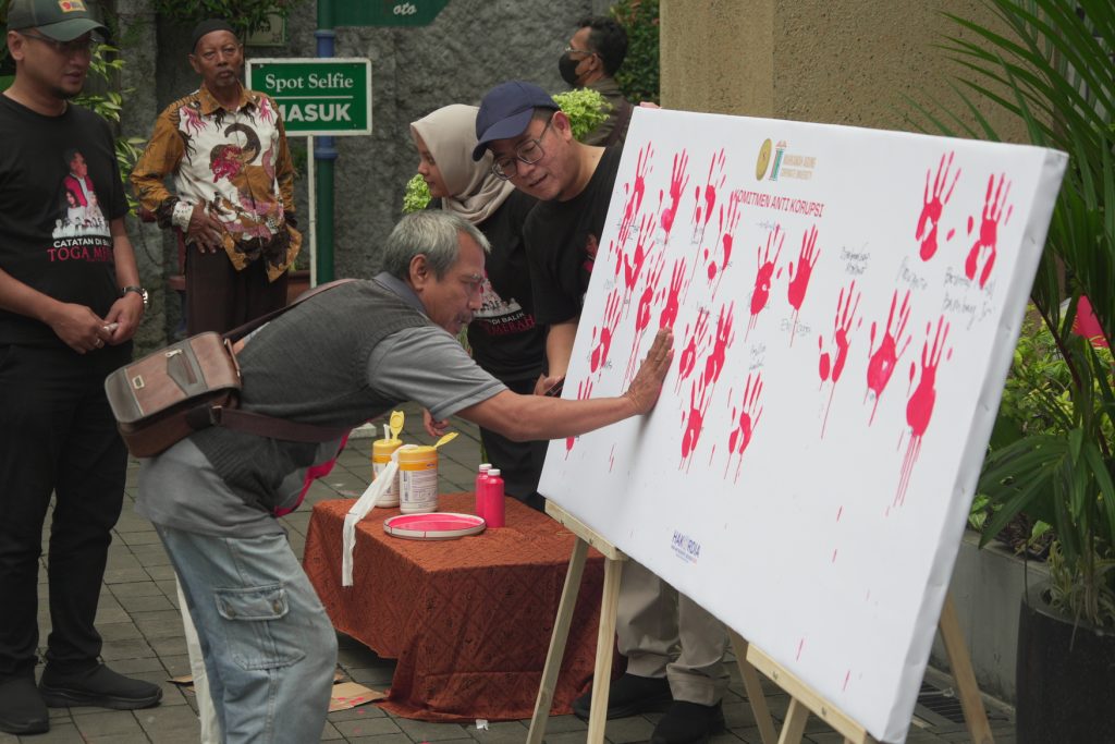 - Pernyataan Komitmen Antikorupsi melalui cap telapak tangan menggunakan tinta merah oleh masyarakat di area Festival UMKM Pasar Kangen.