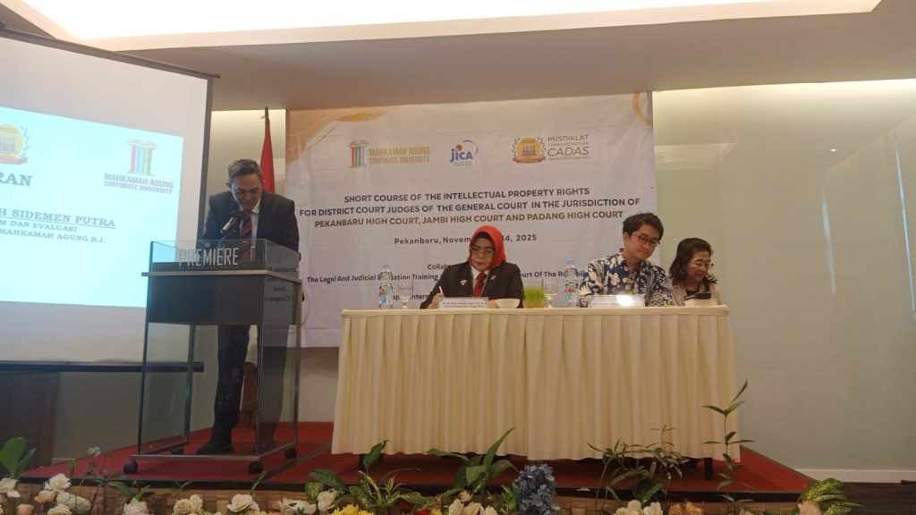 Pekanbaru, Suasana hangat dan penuh semangat menyelimuti ruang pertemuan Hotel The Premier Pekanbaru pada Senin, 10 November 2025, saat digelar Pelatihan Singkat Hak Kekayaan Intelektual (HKI) bagi Hakim Tingkat Pertama Peradilan Umum wilayah hukum Pengadilan Tinggi Pekanbaru, Pengadilan Tinggi Jambi, dan Pengadilan Tinggi Padang.