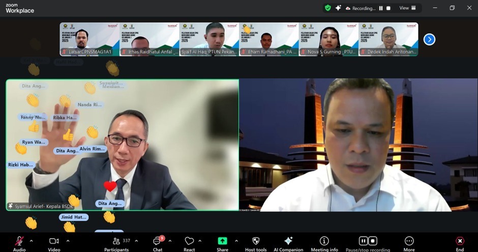 Beliau juga membagikan perjalanan karier yang dimulai sebagai staf PNS di Pengadilan Kotabumi. Dengan memegang nilai-nilai ASN, kariernya bertahap berkembang hingga menjabat Eselon Idi MA RI. Kisah ini diharapkan memotivasi CPNS yang bertugas di berbagai daerah untuk tetap bersemangat, bekerja cerdas dan berintegritas sehingga memiliki prospek karier yang baik ke depan. Gaya penyampaian yang humorisdan mendekatkan diri dengan generasi Z membuat sesi ini disukai peserta. Diharapkan para peserta dapat menyerap pembelajaran dengan baikdan mengaplikasikannya dalam tugas sehari-hari.