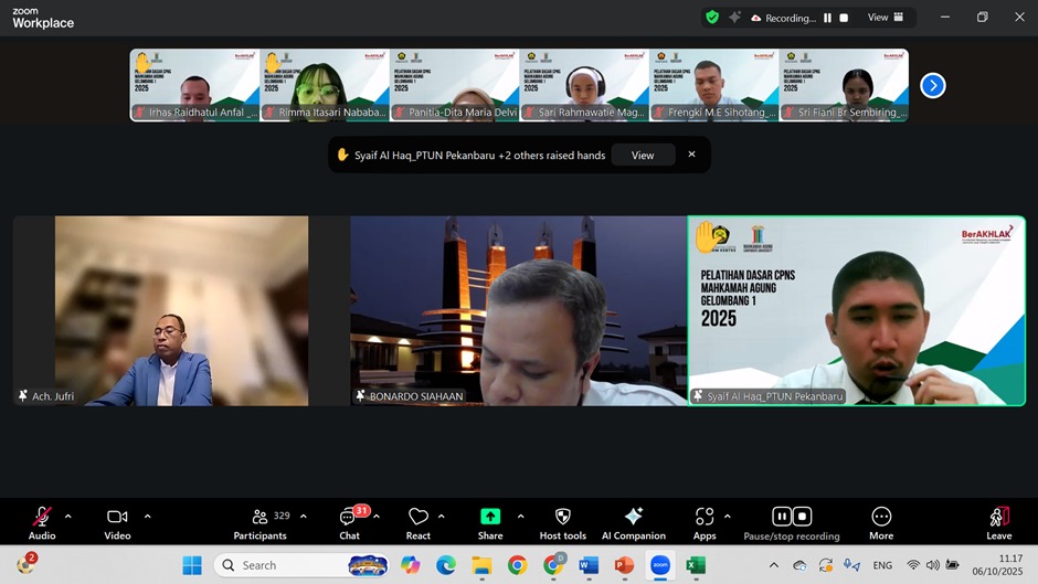 Pesan itulah yang disampaikan oleh Sekretaris Badan Strajak Diklat Kumdil MA RI, Bapak Dr. drs. Ach. Jufri, SH., MH, dalam Ceramah Inspirasi hari ini kepada peserta Pelatihan Dasar CPNS Gelombang 1 yang bekerjasama PPSDM Kementerian ESDM RI yang berjumlah 320 orang secara daring, dengan tema “Profesionalisme ASN”.