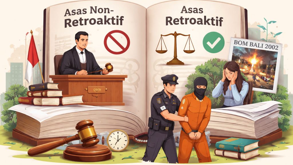 Pada dasarnya, asas non retroaktif atau asas legalitas melarang undang-undang untuk berlaku surut atau retroaktif. Hal ini bertujuan untuk menjamin kepastian hukum, yang mana harus ditetapkan terlebih dahulu ketentuan pidana tentang suatu perbuatan, baru kemudian pelanggaran terhadap ketentuan itu dapat dikenakan sanksi pidana sebagai konsekuensi logis atas pilihan bebas subjek hukum untuk berbuat suatu perbuatan yang dilarang sebagaimana dasar asas legalitas Pasal 1 ayat (1) KUHP 2023. Dan Asas non retroaktif dalam hukum pidana dapat disimpangi, sebagaimana diatur di dalam ketentuan Pasal 1 ayat (2) KUHP lama yang berbunyi:Bilamana ada perubahan dalam perundang-undangan sesudah perbuatan dilakukan, maka terhadap terdakwa diterapkan ketentuan yang paling menguntungkannya.