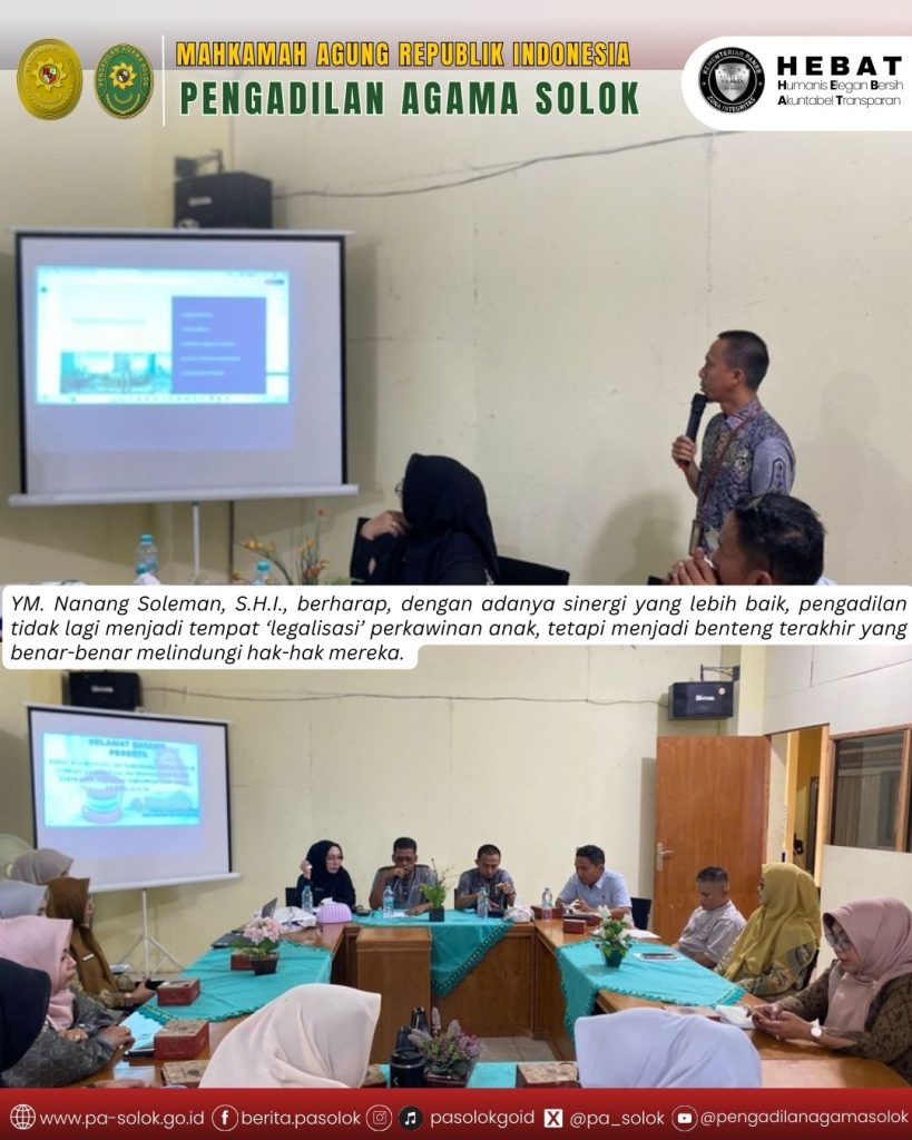 YM. Nanang Soleman, S.H.I., berharap, dengan adanya sinergi yang lebih baik, pengadilan tidak lagi menjadi tempat ‘legalisasi’ perkawinan anak, tetapi menjadi benteng terakhir yang benar-benar melindungi hak-hak mereka. Perjuangan untuk menjaga hak anak adalah tanggung jawab bersama yang harus terus diperjuangkan demi masa depan generasi penerus bangsa.