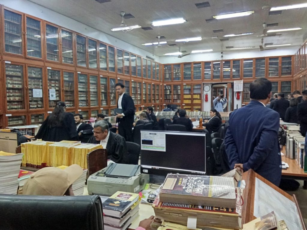 Terdapat juga, lawyer yang menyesuaikan dokumen pendapatnya/pembelaan yang akan diajukannya ke pengadilan, dengan beragam buku yang terdapat di perpustakaan Madhya Paradesh High Court.