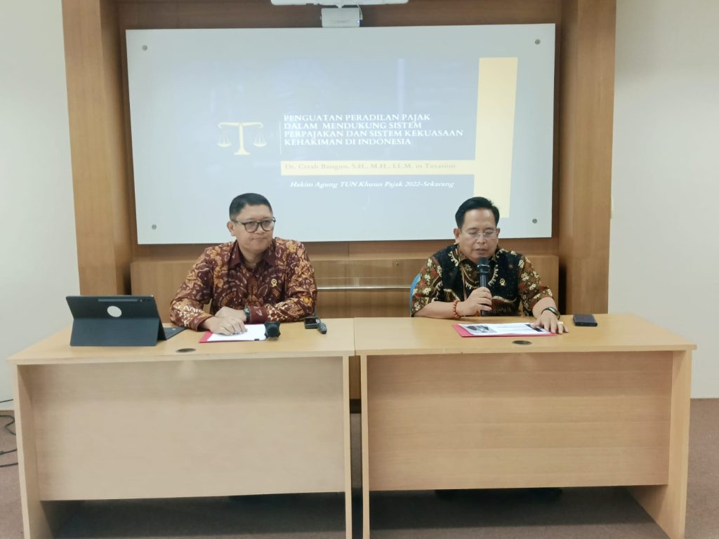 Dalam materi yang disampaikan, YM Dr. Cerah Bangun mengawali dengan landasan konstitusional. Pasal 24 Ayat (2) UUD 1945 menegaskan bahwa kekuasaan kehakiman dilakukan oleh Mahkamah Agung dan badan peradilan di bawahnya, meliputi lingkungan Peradilan Umum, Militer, Tata Usaha Negara, dan Agama, serta sebuah Mahkamah Konstitusi. Lantas, di mana posisi Pengadilan Pajak? Pendekatan legalistik melalui UU No. 14 Tahun 2002 tentang Pengadilan Pajak memberikan jawaban. Pengadilan Pajak merupakan pengadilan khusus yang berada di lingkungan Peradilan Tata Usaha Negara. Hal ini diperkuat dengan Pasal 1 angka 8 jo. Penjelasan Pasal 27 Ayat (1) UU No. 48 Tahun 2009 tentang Kekuasaan Kehakiman.