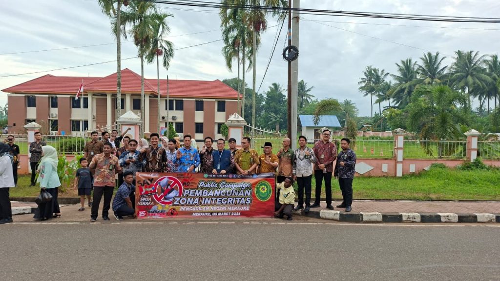 Dari ujung paling timur Indonesia, pesan tersebut disampaikan oleh Pengadilan Negeri/Perikanan Merauke melalui kegiatan Kampanye Zona Integritas (Public Campaign) yang dilaksanakan pada 5 Maret 2026. Kegiatan ini menjadi momentum penting untuk menegaskan komitmen aparatur pengadilan dalam menghadirkan pelayanan peradilan yang bersih, transparan, dan bebas dari praktik korupsi.