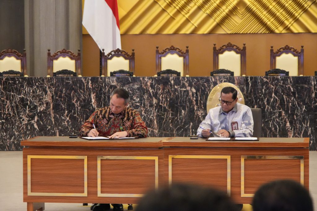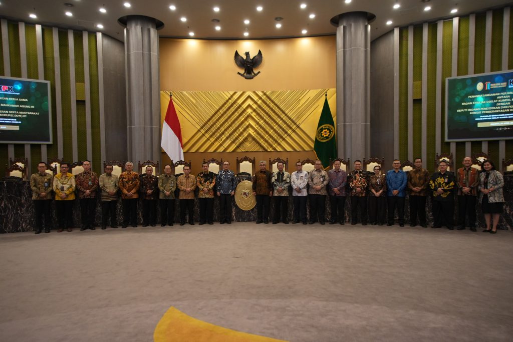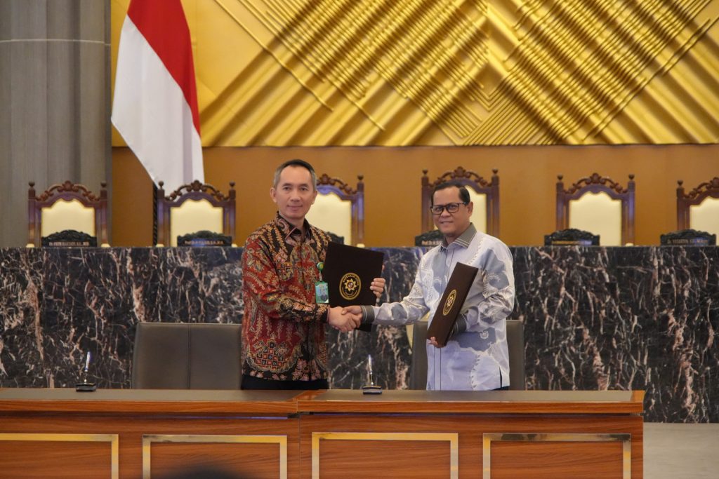 Jakarta, 24 April 2026 – Mahkamah Agung Republik Indonesia melalui Badan Strategi Kebijakan dan Pendidikan dan Pelatihan Hukum dan Peradilan menandatangani Perjanjian Kerja Sama dengan Deputi Bidang Pendidikan dan Peran Serta Masyarakat Komisi Pemberantasan Korupsi Republik Indonesia pada hari Jumat, 24 April 2026, bertempat di Gedung Mahkamah Agung RI, Jalan Medan Merdeka Utara, Jakarta. Penandatanganan Perjanjian Kerja Sama ini turut dihadiri oleh Ketua Mahkamah Agung RI, Prof. Dr. H. Sunarto, S.H., M.H., Wakil Ketua MA RI Bidang Non Yudisial, Dr. Dwiarso Budi Santiarto, S.H., M.H., Ketua Komisi Pemberantasan Korupsi (KPK) RI, Komjen Pol. Setyo Budiyanto, S.H., Wakil Ketua KPK RI, Dr. Fitroh Rohcahyanto, S.H., M.H., Kepala Pusat Pendidikan Manajemen dan Kepemimpinan BSDK MA RI sebagai inisiator program pelatihan dan Pendidikan antikorupsi, D.Y. Witanto, S.H., serta jajaran pimpinan dari Mahkamah Agung RI dan KPK RI.