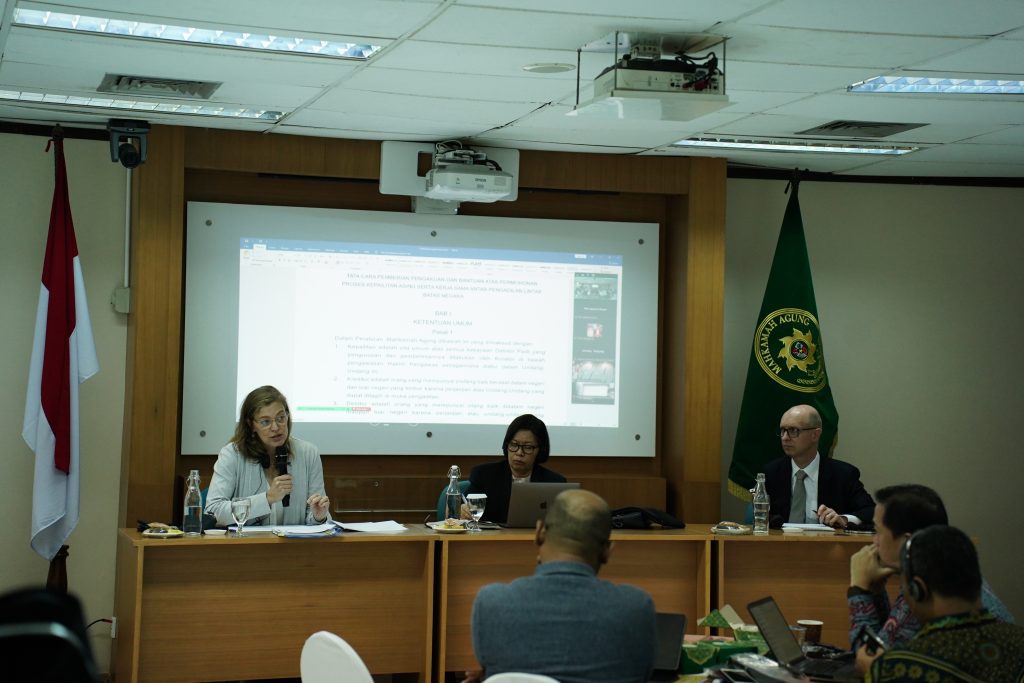 Setelah membuka dan memberikan pemaparan singkat, Bapak Rizkiansyah selaku moderator mempersilakan Tim Penyusun Naskah Urgensi Penyusunan Perma terkait Cross Border Insolvency untuk memaparkan hasilnya. Bapak Ari Gunawan menjelaskan bahwa berdasarkan hasil penelitian yang telah dilakukan, diperlukan penyempurnaan terhadap UU No. 37 Tahun 2004 tentang Kepailitan dan Penundaan Kewajiban Pembayaran Utang guna mengatasi permasalahan kepailitan lintas batas. Sembari menunggu penyempurnaan UU Kepailitan, tim penyusun mengusulkan agar Mahkamah Agung mengambil peran dengan menerbitkan Perma tentang Cross Border Insolvency sebagai pedoman teknis bagi hakim di Indonesia dalam menangani kasus kepailitan lintas batas. Dari Federal Court Australia, yang hadir dalam rapat adalah Mrs. Catterine Button (Hakim Federal) dan Tim Luxton (Registrar). Mrs. Catterine Button memaparkan pengalaman Australia dalam menangani kasus kepailitan lintas batas negara. Australia telah mengadopsi UNCITRAL Model Law dan selama lebih dari 17 tahun telah menerima serta memutus berbagai permohonan pengakuan putusan asing, termasuk permohonan winding up terhadap PT Garuda Indonesia Tbk. Setelah pemaparan tersebut, acara dilanjutkan dengan sesi tanya jawab, baik secara luring maupun daring. Acara kemudian ditutup oleh YM Dr. Nani Indrawati, S.H., M.Hum yang menyatakan bahwa Indonesia perlu memperbarui aturan mengenai penanganan kepailitan lintas batas negara sebagai langkah untuk meningkatkan kepercayaan masyarakat di Indonesia dan UNCITRAL Model Law menawarkan kerangka hukum yang komprehensif untuk mengatasi permasalahan kepailitan lintas batas.