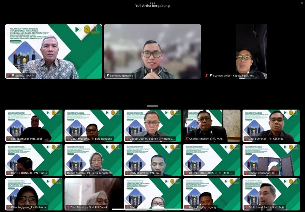 JAKARTA – Badan Strategi Kebijakan Pendidikan dan Pelatihan Peradilan Mahkamah Agung Republik Indonesia (BSDK MARI) menggelar pelatihan intensif mengenai implementasi Kitab Undang-Undang Hukum Pidana (KUHP) dan Hukum Acara Pidana baru. Hadir sebagai narasumber utama, Hakim Agung Mahkamah Agung RI, YM. Bapak Sutarjo, S.H., M.H., yang membedah topik krusial mengenai pemeriksaan di sidang pengadilan tingkat pertama, mencakup acara pemeriksaan biasa, singkat, cepat, hingga persidangan tertentu.