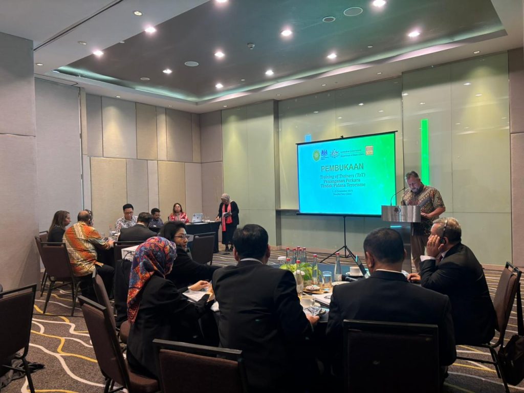 Senin, 1 Desember 2025 bertempat di Ruang Thamrin Hotel Double Tree Jakarta Pusat, YM Wakil Ketua MA Bidang Yudisial Bapak H. Suharto, S.H., M.Hum., secara resmi membuka Tarining of Trainer Penanganan Perkara Tindak Pidana Terorisme. Kegiatan yang dilaksanakan tanggal 1 s/d 5 Desember 2025 ini diikuti oleh 21 Hakim, terdiri dari Hakim Yustisial BSDK, Anggota Pokja Penyusunan Raperma Pedoman Pemidanaan Tindak Pidana Terorisme dan Hakim PN serta PT yang telah mengikuti Pelatihan Penanganan Perkara Terorisme, terutama dari wilayah PT Jakarta.