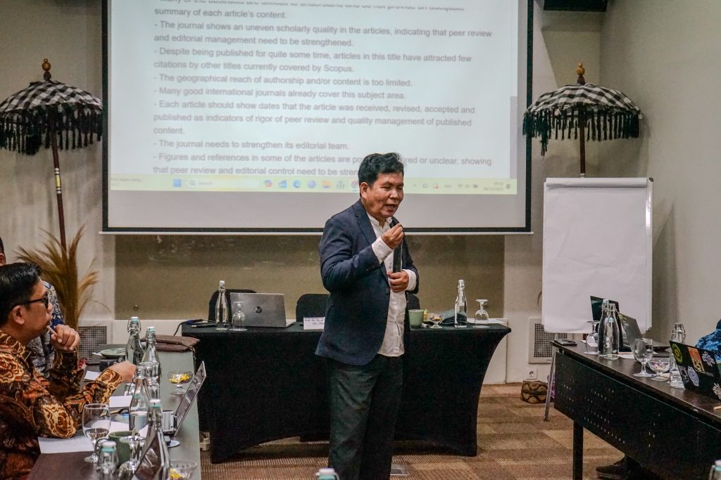 Namun apresiasi tidak hadir tanpa evaluasi. Andi Akram menggarisbawahi satu titik krusial: respons reviewer luar negeri yang kerap lambat dan sulit diprediksi. “Jika batas waktu sudah ketat namun tidak ada respons, editor harus berani mengambil keputusan mengganti reviewer,” ujarnya lugas. Bagi pengelola jurnal, pernyataan itu bukan sekadar catatan teknis, melainkan penegasan tentang pentingnya ritme kerja yang disiplin dan keputusan editorial yang tegas.